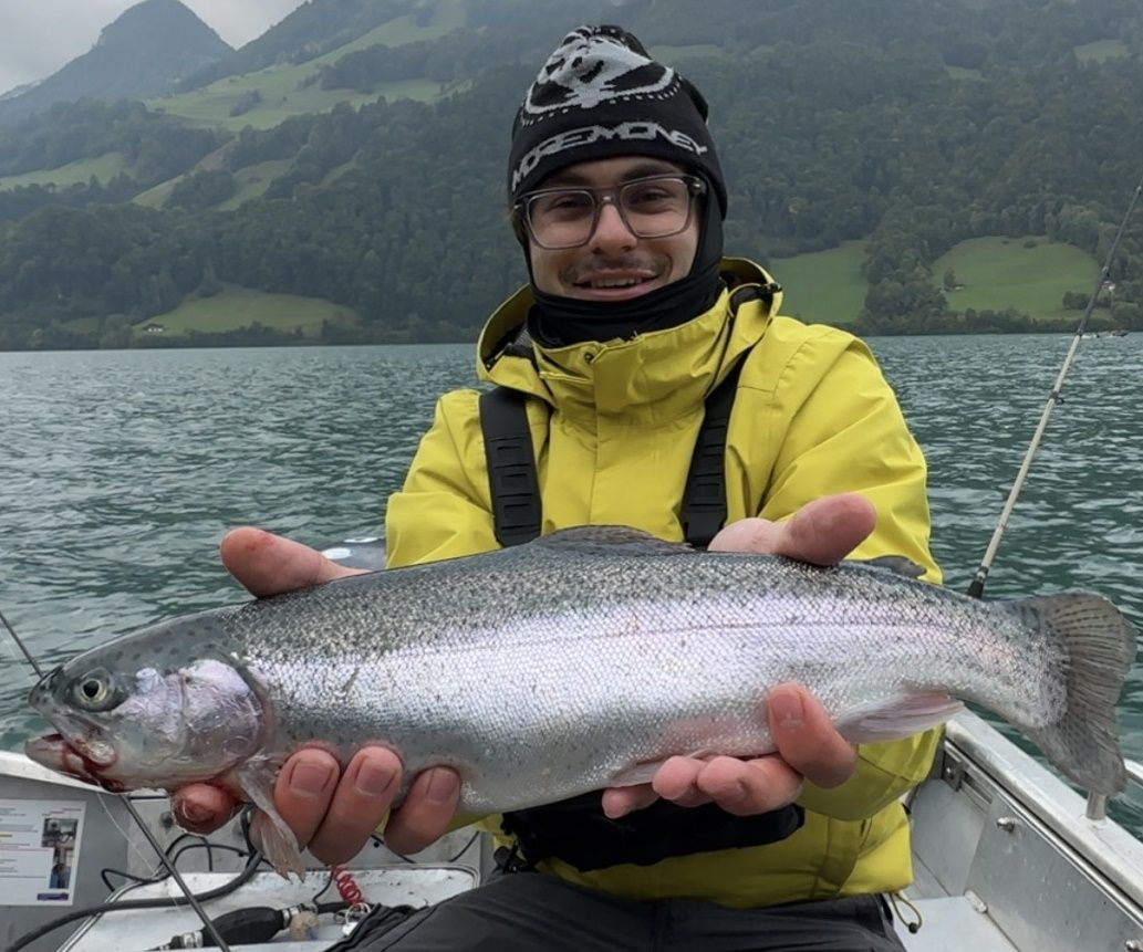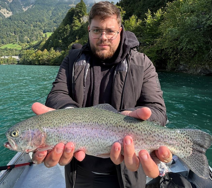 Filip Maksimovic mit Lungernsee-Regenbogenforelle 43 cm gefangen am 01.10.2025